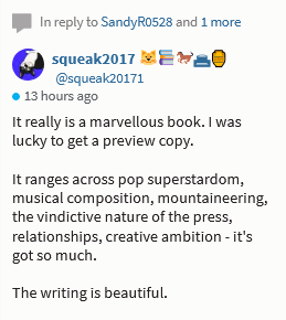 ‘A perfectly crafted novel of music, mountaineering and mourning – gripping, authentic, recommended.’ Squeak2017