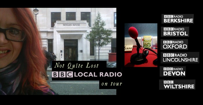 At Wogan House, the BBC’s contribution studio in central London, to record interviews for local radio about Not Quite Lost. 10 November 2017, BBC Radio Devon. 16 November 2017, BBC Radio Lincolnshire and BBC Radio Wiltshire. 19 November 2017, BBC Radio Berkshire and BBC Radio Oxford. 20 November 2017, BBC Radio Bristol