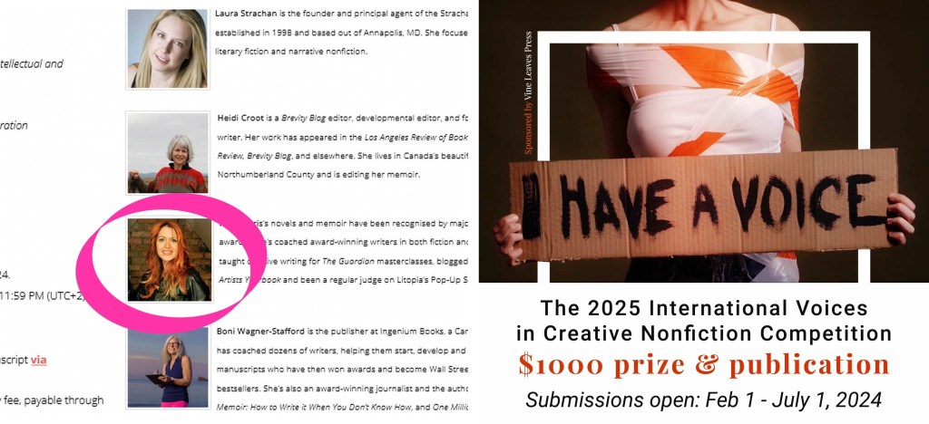 I’m one of the judges in the 2025 Vine Leaves Press International Voices in Creative Non-Fiction Award, where I’ll be helping to select a manuscript for publication.