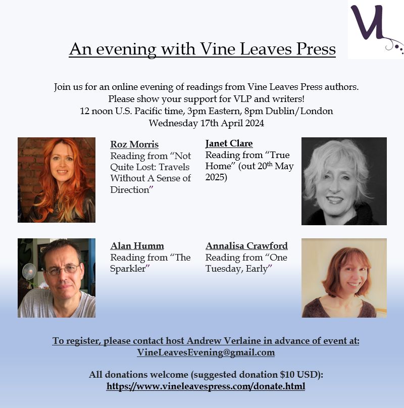 In April 2024 I gave a reading from my travel memoir Not Quite Lost: Travels Without A Sense of Direction as part of an evening to celebrate the work of four authors from the indie publisher Vine Leaves Press. The event is available on YouTube – so do drop by.