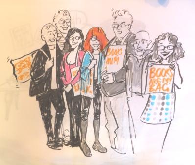 Cartooned by Cathy Brett in the Books Are My Bag event, Barton’s Bookshop 2014